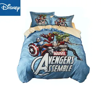 Marvel Queen Size Bedding: Disney marvel avengers iron man children boy bedding set 100% cotton cartoon duvet cover sheet single queen king child bedding.