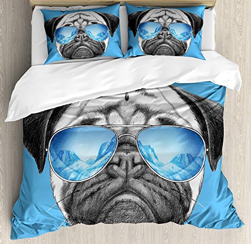 You're between the sheets for a third of your day, so why not make your bed with ones you can't wait to crawl into? Bed sheets that define your style. Many owners have to leave their pug home alone sometimes, especially if they work. Check out our pug bed sheets selection for the very best in unique or custom, handmade pieces from our shops. Pug duvet cover 4 piece bed sheets set, pug dog puppy adorable doggie with bones pattern, 1 flat sheet 1 duvet cover and 2 pillow cases.